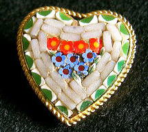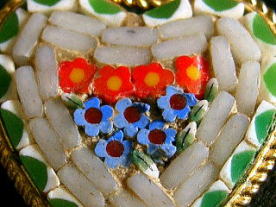 A022 ブローチ(モザイクフラワー) SOLD 1950年代のアンティークブローチ です。小さなガラスのモザイクで出来ています。 たて25mm、よこ23mm ★★★