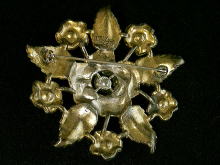 A059 ブローチ(LITTLE NEMO) SOLD ブロンズにオレンジの石がついた花柄のアンティークブローチです。石はシトリンでしょうか。裏にLN(LITTLE NEMO)/25の刻印があります。格調高い渋いブローチです。直径70mm。ワレ、カケ、キズなどありません。おすすめ! ★★★