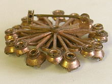 A077 ブローチ(花) SOLD 1950〜60年代のブローチ(アメリカ製)です。花の形をデザインされています。たくさんのダイヤが散りばめられてゴージャスな雰囲気があります。ダイヤは本物ではありません。キズ、汚れ、破損などなく、状態は良好。直径35mm。 ★★★