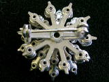 A161 ブローチ(フラワー) SOLD ちょっと小ぶりですが、厚みのあるダイヤカットのブローチです。中央の大きなルビーカラーのストーンを中心に小さなクリスタルのストーンが2段でたくさん配置された珍しいデザインです。何にでも合うと思われますのでカジュアルにお楽しみ下さい。直径26mm。状態はキズ、破損などなく良好です。 ★★★