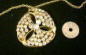 A195 ペンダント(リーフデザイン) SOLD リング状に組み合わされたゴールドトーンのメタルにたくさんのクリスタルカットのストーンがイチョウの葉のようなデザインに配置されています。ストーンを留めてある爪もしっかり作られており、デザインも凝っています。1960〜80年頃のアメリカンコスチュームジュエリーです。シックな大人の雰囲気をお楽しみ下さい。直径48mm。状態はキズ、破損などなく良好です。★★★★