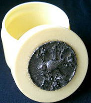 AZ002 クリーム容器(アールヌーボー) SOLD 緻密な鳥のブロンズのユニークなクリーム容器です。1900年代前期のものです。ケース及び金属細工部分にキズや欠けはありません。よい仕事してますおすすめ! 直径58mm、高さ45mm。 ★★★