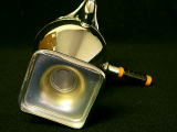 C025 クリーマー(アールデコ) SOLD クロムウエアで有名なMANNING BOWMAN社のアールデコのクリーマーです。1930〜50年頃のものと思われます。中はゴールドトーンで外はクロムメッキ仕上げとなっています。持ち手はベークライトで質感がありますね。クロムとベークがよく調和してアールデコ時代を象徴しているようです。C026のシュガーポットとペアでお揃え下さい。キズ、ヨゴレ、メッキのカスレなどなくとても良い状態です。直径85mm、高さ120mm ★★★★
