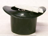 帽子から可愛い白ウサギが飛び出すMADE IN USAのマジックハットです。プラスチックで出来ています。白い手袋を横にスライドさせるとラビットがバネ仕掛けで出てきます。面白いからくり仕掛けですね。5歳くらいまでのお子さんになら間違いなくうけると思いますのでプレゼントにどうぞ。裏にCOMMONWELTH PLASTICS CORP.USAと書かれています。状態は良好で大きな傷みはありません。タテ55mm、ヨコ67mm、高さ45mm。