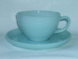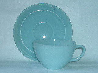 H002 ファイヤーキング カップ&ソーサー(ターコイズブルー) SOLD アンカーホッキング社のファイヤーキング。ターコイズブルーと呼ばれるカップ&ソーサーです。ブルーの色が爽やかな1956〜58年のものです。状態は良好です。カップ直径95mm、高さ58mm。ソーサー直径147mm。