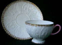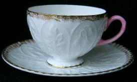 商品番号:S019 商品名:カップ&ソーサー 価格(税込み):12000円 商品の説明: イギリスAYNSLEYのカップ&ソーサー。 皿とカップに盛り上げの装飾があります。 持ち手のピンクがアクセントになっています。 個性的ですね。