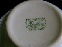 とても珍しいシェリー(SHELLEY)の子供の絵が描かれたディンティシェイプのカップ&ソーサーです。裏にFINE BONE CHINA SHELLEY ENGLANDと書かれています。とても可愛い絵でお子様用に造られたものだと思います。使用感はありませんが、口の周りの銀彩がまわりに散って小さな黒点が散りばめられたようになっており、ちょっと目には汚れた感じに見えます。製造時に出来たものです。カップ直径100mm、高さ75mm。ソーサー直径162mm。