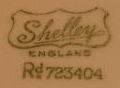イギリスのシェリー窯クイーンアンのカップ&ソーサーのトリオです。No.11429のBlack Trees&Sunsetと呼ばれる柄で裏にShelley ENGLAND Rd 723404のマークと11429の番号が見られます。カップの8角形と持ち手が特徴でアールデコ時代のデザインを代表しています。1930年代のものです。使用感はありません。とても良い状態です。カップ直径80mm、高さ60mm。ソーサー136mm角、ケーキ皿157mm。