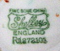 イギリスのシェリー窯のカップ&ソーサー・ケーキ皿のトリオ。ディンティと呼ばれるシェイプ(Ro.272101)でNo.13591のBlue Rock(花の名)と呼ばれるパターンです。裏にShelley ENGLAND と書かれたマークがあります。Daintyとは優雅なという意味で、カップの形が花びらのようです。このディンティシェイプはクイーンアンよりも古く、ワイルマンの時代にローランド・モリスという人がデザインしたもので、当時は大変人気がありました。使用感はありません。とても良い状態です。カップ直径90mm、高さ60mm。ソーサー直径145mm。★★★★