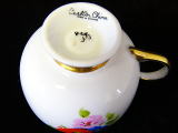 Carlton China はカールトンウエアの磁器部門として1927年にイギリスのSTOKEで創業されましたが、1967年に創業者が没し閉鎖されました。いまでは大変コレクティブルなアイテムです。このカップ&ソーサーは1930〜40年頃のものと思われます。明るい花柄と金彩がよくマッチしており”Sunshine”と名づけられています。カールトンらしい一品ですね。裏にCarlton China made