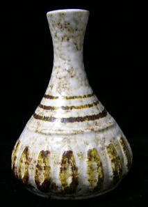 SC060 ミニベース(デンマーク製) SOLD 完売 1970年代の北欧・デンマークのミニベースです。 ブラウンの地に白い釉薬がかかったモダンアートなスタジオポテリーです。 窯のマークなどは見られません。 奇抜な装飾に北欧の雰囲気が良く出ています。 ワレ、カケ、キズなどなくとても良い状態です。 直径80mm、高さ110mm。 ★★★★