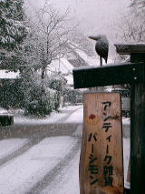 店の斜め前の藁葺きの家も真っ白になりました。![]() |