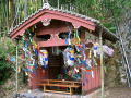 店の前に立つお地蔵さん。地蔵盆の飾りつけをしています。![]() |