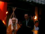 パーシモンの前を通る寂聴さんとさだまさしさん。![]() |