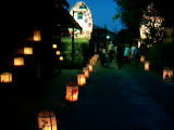 パーシモン周辺の嵯峨野風景を四季折々に 今年も恒例の愛宕古道街道灯しが念仏寺の千灯供養にあわせて8月23〜24日の2日間行われました。例年のごとく嵯峨美術大学の協力によりたくさんの灯篭が製作され、古道に沿って並べられ訪れる人々の目を楽しませてくれました。パーシモンは古道の途中にあります。たくさんのお客様に訪問して頂きましたことを御礼申し上げます。行事の一部をご紹介いたします。 |