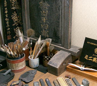 古い書道具。どういうわけかミニチュア三輪車も!