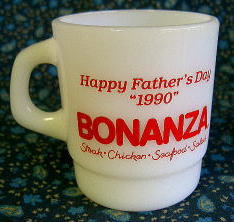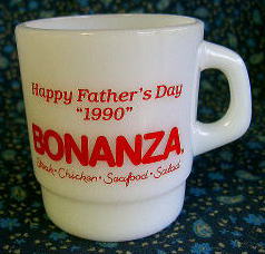 GM011 アド・マグ(Termocrisa) SOLD 1990年のTermocrisa社のBONANZAマグです。メキシコから輸出されたものですが、数が少ないので人気上昇中です。掘り出し物? 直径78mm、高さ88mm。 ★★★★