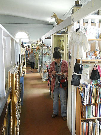 2階建てレンガ造りの大きな建物で、中にはたくさんのブースやキャビネットがあります。
